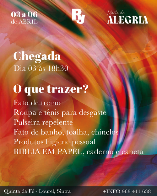 ✨ Obs: NÃO É PERMITIDO o uso de aparelhos electrónicos nem telemóvel durante o retiro!